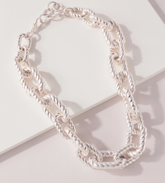 Be BOLD with this twisted chain necklace! Available in gold and silver.