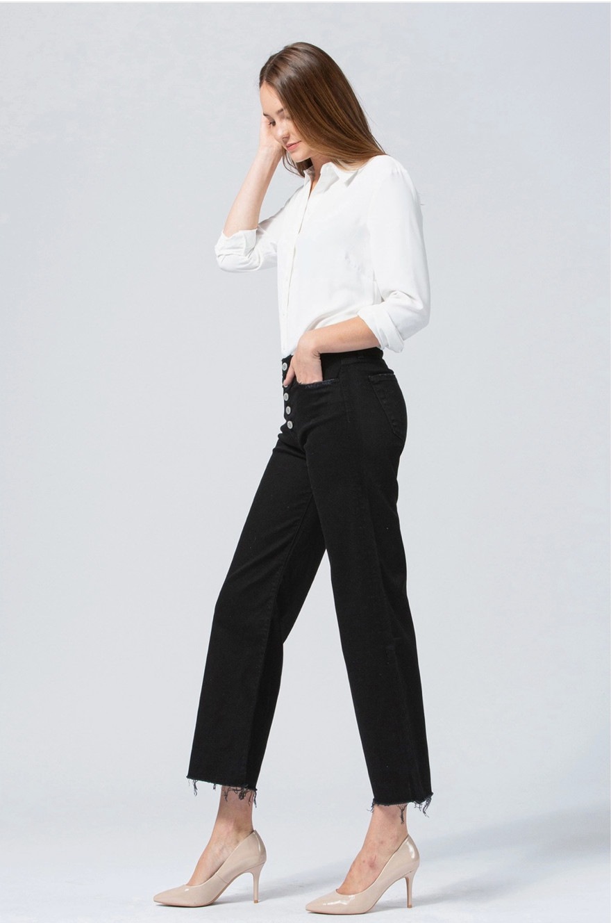 How cute is our newest denim?? There is just so much going on with these! From their high rise button up waste, all the way down to the distressed wide leg these are an absolute must have. Dressed up with booties or down with tennis shoes these are going to be your fall season go to!