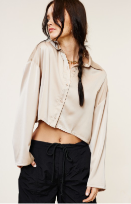 Our Satin Cropped Button Up is perfect staple piece. It can be worn dressed up, or dressed down and layered.