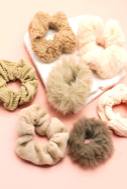 Style these scrunchies either in a fun hairstyle, or on your wrist as a jewelry piece!